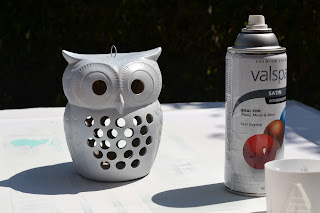 Back several months ago, I found this ceramic owl at a neighbor's yard sale. I wrote all about him and an environmental campaign that I remembered from my childhood with a mascot by the name of Woodsy. The blog post is entitled, Give a Hoot, Don't Pollute! Since then, Woodsy has starred in many blog posts along the way. He has kinda been a traveling companion of sorts having joined in as an accent on many of my redecoration projects. I probably should give him his own category on my blog!!