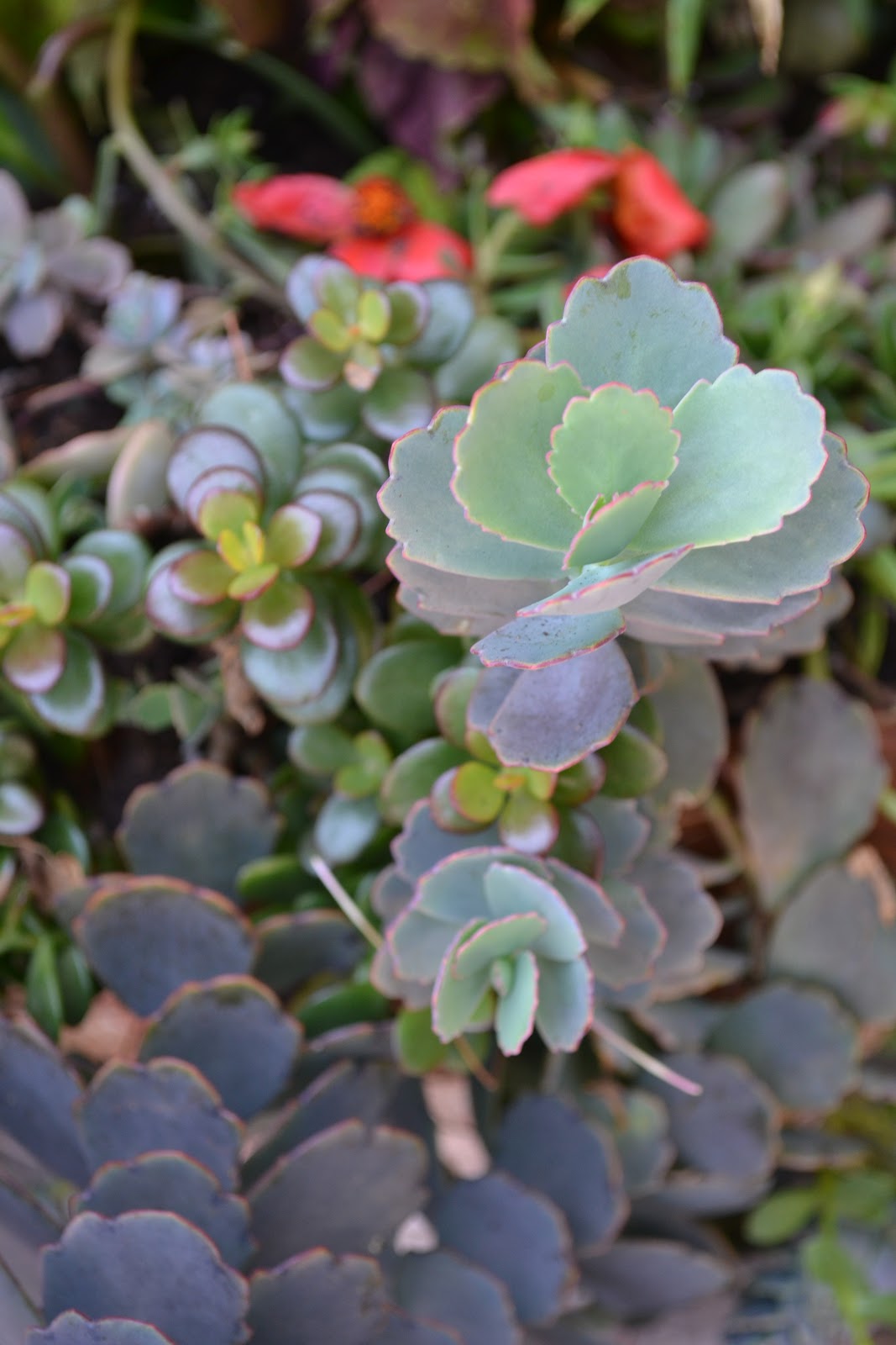 I have pots that I cram all my sad, but still somewhat healthy, plants into and allow them to regain their strength together. It's become quite an extraordinary collection of plants. This particular pot (right) is quite a show piece.....and all these plants were almost dead at some point. (except for the little Purslane that I just stuck in the middle.) I added the little stressed out plant above to this pot. If you look closely you can see it peeking out from the back.
